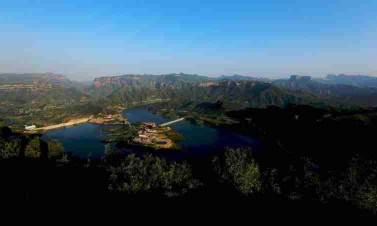 在蜿蜒的山谷中,河水会顺着山势形成美丽的的大转弯,它就是甘陶湖,也被叫做张河湾水库,隐藏在苍岩山西南的高山峡谷中,距离石家庄80公里。