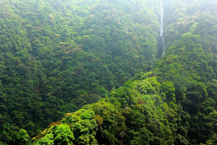 林木秀美视野开阔。缺点是水流量偏小,水质不够清纯,切莫直接饮用。天梯瀑布落差 300米, 数重瀑布叠沓而下,其一竟达百米。瀑底仰望,石壁森然环峙,如处井底。两壁半天悬起一线八十 米长铁锁桥,轻巧单薄。