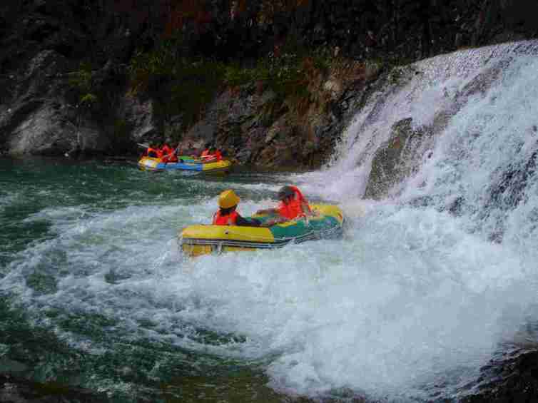 感受惊险刺激的狂狮河漂流,狂狮河漂流长约10公里,全程约需2.5个小时,水急、谷幽、石奇、崖险、花香、林密。