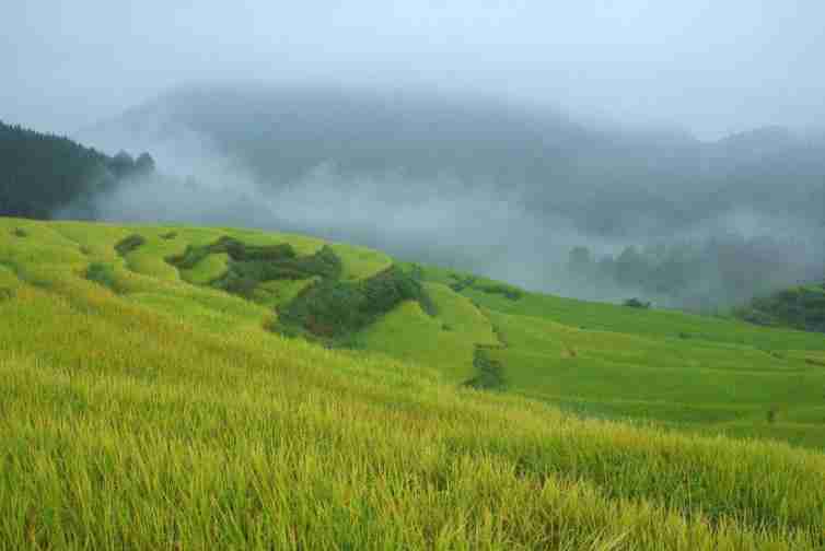 欧家梯田位于清远市被誉为“广东岭南屋脊”的连山最高山峰大雾山脚下。欧家梯田呈M字型分布在欧家村周围,规模宏大、气势磅礴的欧家梯田绵延近3千米,是广东省规模最大、最原生态梯田。