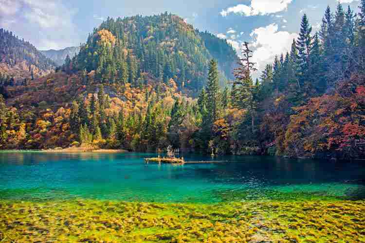 牟尼沟位于四川省阿坝州松藩县。有人说,牟尼沟是九寨沟和黄龙的集合体,集合了两者的优点,既有九寨沟五彩斑斓的水世界,也有黄龙的玄幻迷离的钙化池。