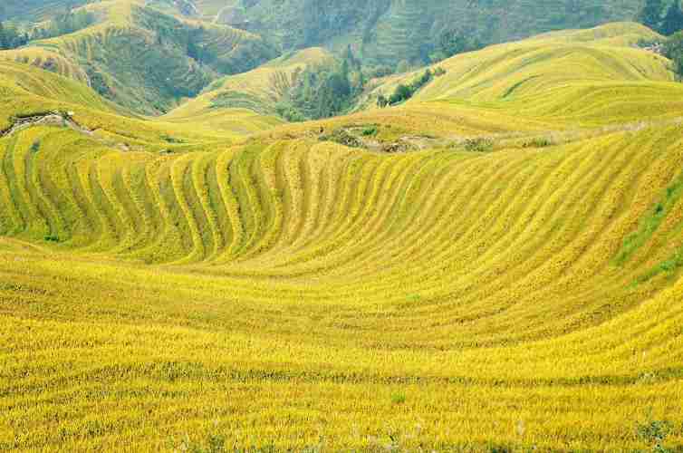 龙胜梯田群规模宏大,全部的梯田分布在海拔300-1100米之间,最大坡度达50度,一层层从山脚盘绕到山顶,层层叠叠,高低错落。其线条行云流水,其规模磅礴壮观。是桂林旅游的一个重要组成部分。