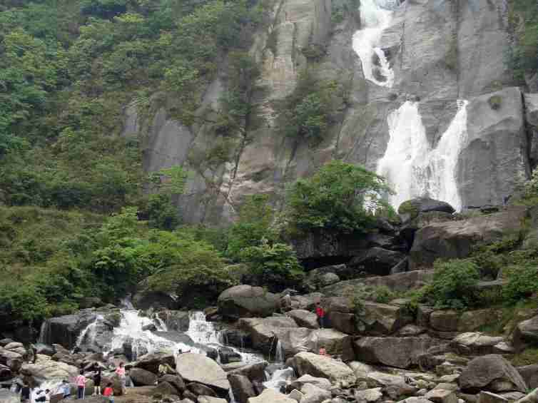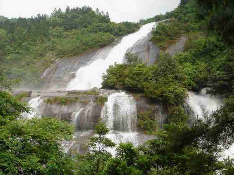 宝鼎瀑布有世界上罕见的特色:花岗岩岩石构成的瀑床,700多米的落差,瀑布脚下有高湖相接。