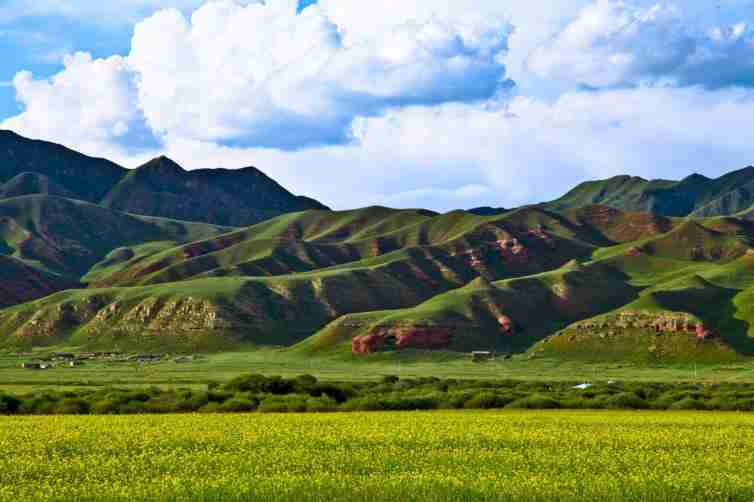 甘南,草原的夏秋,碧草连天。常常可聆听到,鹰族和羚群把黄河首曲的神韵踩动。圣经天堂般的甘南,草原上弥散着沁人心脾的酥油香。整个草原碧绿如茵,鲜花盛开,繁花似锦,牛羊遍野,蓝天、白云、绿草浑然一体。
