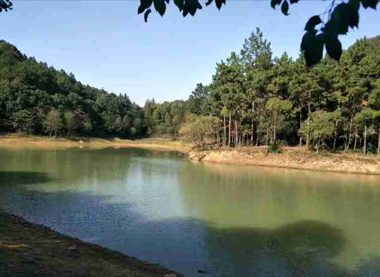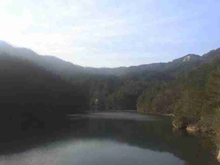 木兰天池,国家 AAAA 级景区,位于黄陂区北部石门山,距武汉市中心 55 公里,堪称武汉的 " 后花园 "。景区沟壑纵横,林木茂盛,一年四季流水不断,呈现的是一种山水交融的湿地生态。景区内以观赏飞瀑、溪潭、怪石等景观为主,可谓十步一景、百步一绝。高山环抱的天池水如明镜,清澈见底,游船踏浪,驶过青山白云倒映的池水。