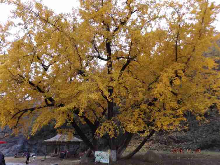“五棵树”是银杏谷最著名的景点,五棵银杏像兄弟般在那里迎风斗雨聚集了千年,仍然枝繁叶茂、高大挺拔。在秋日的阳光下,满树泛着金黄的光芒迎风摇曳,随风洒落,像一只只自由自在、翩翩起舞的金色蝴蝶,充满了浪漫和谐。