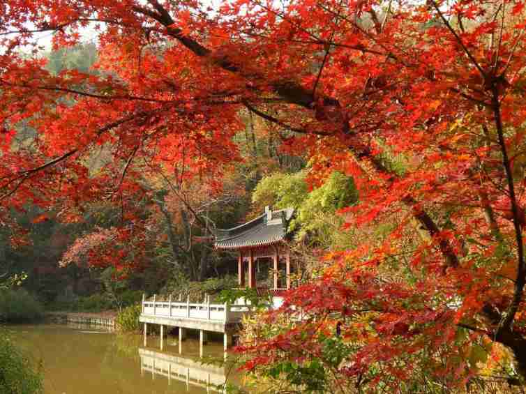 苏州木渎古镇西北的天平山与长沙岳麓山、北京香山、南京栖霞山并称我国四大传统红叶观赏胜地,以红枫、青泉、怪石这三绝而闻名遐迩。其主要特异之处,在于绮丽的色彩。