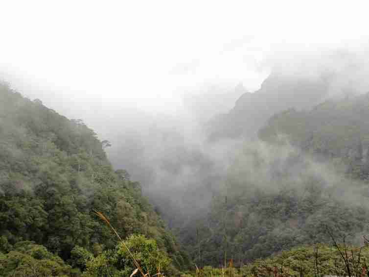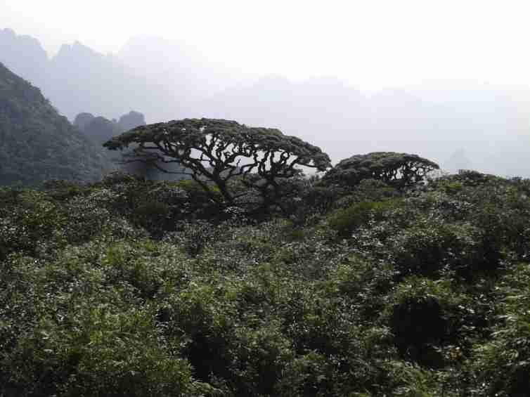 最高峰海拔1979米,为广西第五高峰、桂中第一高峰。清晨站在山头俯瞰,只见连绵数十里的群峰之巅云涛钻动,其势汹涌,气势磅礴,群山在云海之中时隐时显,有如蛟龙腾舞,太阳出来时,云朵都镶上金边,光霞万道,蔚为壮观。