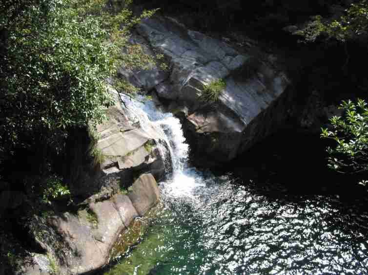 瀑布响声如雷,音传百里之外。飞瀑则如一匹匹投向染缸的白绢素缎,煞是壮观。瀑布下一口圆潭,水深丈余,水面湛蓝,宛如一口蓝靛缸。冰泉似玉滑肌肤,像仙人沐浴的淌瑶池。
