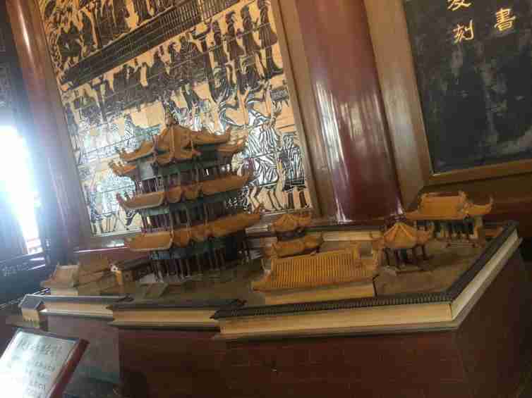 巍峨耸立于武昌蛇山的黄鹤楼,享有 " 天下绝景 " 的盛誉,与湖南岳阳楼,江西滕王阁并称为 " 江南三大名楼 "。全楼各层布置有大型壁画、楹联、文物等。楼外铸铜黄鹤造型、胜像宝塔、牌坊、轩廊、亭阁等一批辅助建筑,将主楼烘托得更加壮丽。登楼远眺," 极目楚天舒 ",不尽长江滚滚来,三镇风光尽收眼底。黄鹤楼的形制自创建以来,各朝皆不相同,但都显得高古雄浑,极富个性。与岳阳楼、滕王阁相比,黄鹤楼的平面设计为四边套八边形,谓之 " 四面八方 "。这些数字透露出古建筑文化中数目的象征和伦理表意功能。
