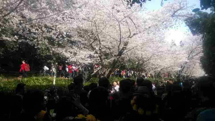 武汉大学珞珈山,原名罗家山,亦名落袈山。珞珈山坐落在在湖北武昌东郊。武汉大学坐落在珞珈山之西部,依山构造,建筑富丽。近山湖水中有浪淘石,累累罗列,附近还有六一纪念亭、六一烈士墓等革命纪念建筑物和航海俱乐部、游泳池等体育设施,使此山更显辉煌瑰丽,益增游人欣赏雅兴。武汉大学的樱花道,位于前理学院和老图书馆的下方。道两旁的樱花树枝干壮实、排列整齐。每年的3月至4月初,繁花满枝。樱花花期仅为一周,每到落花时节,落英缤纷的樱花又为大地铺上了一层浅浅的“花毯”。每年开花时节,赏花的游人络绎不绝。