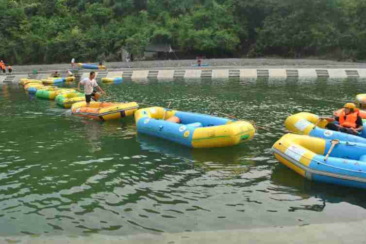 6、当艇在受卡时不能着急站起,应稳住艇身,找好落脚点才能站起,以保证人不被艇带下而冲下。当您误入其他水道被卡或搁浅时,请站起下艇,找到较深处时才再上艇,不能在艇上左右磨动,因为漂流是一种对你体能与胆量的挑战。