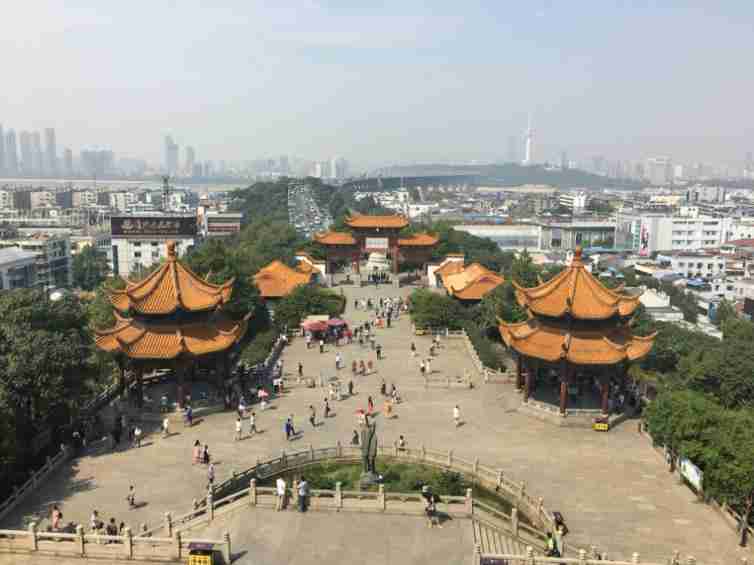 古黄鹤楼早毁于战乱,现在的新楼是在1985年重新建造的,它比旧楼更壮观,因为飞架大江的长江大桥就横在它的面前,大桥和名楼交相辉映,互为增色。站在高出江面近90米的楼上,大江两岸的景色,历历在望,令人心旷神怡。黄鹤楼所在的蛇山一带已辟为黄鹤楼公园。