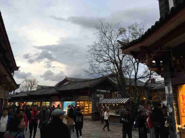 从雕梁画栋的挂着“束河古镇”四个字的大牌坊走进去,沿着两边都是店铺的石板路面可以一直走到古镇中心,像大研古镇一样,这里也叫四方街。当年的四方街,是马帮交易皮毛皮货的场所,现在的四方街,四面都是各种商铺,依稀可以感觉得到当年的繁华。
