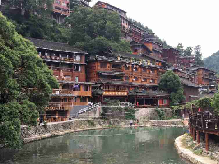 镇远古镇是贵州省黔东南苗族侗族自治州镇远县名镇,位于舞阳河畔,四周皆山。河水蜿蜒,以“S”形穿城而过,北岸为旧府城,南岸为旧卫城,远观颇似太极图。两城池皆为明代所建,现尚存部分城墙和城门。城内外古建筑、传统民居、历史码头数量颇多。