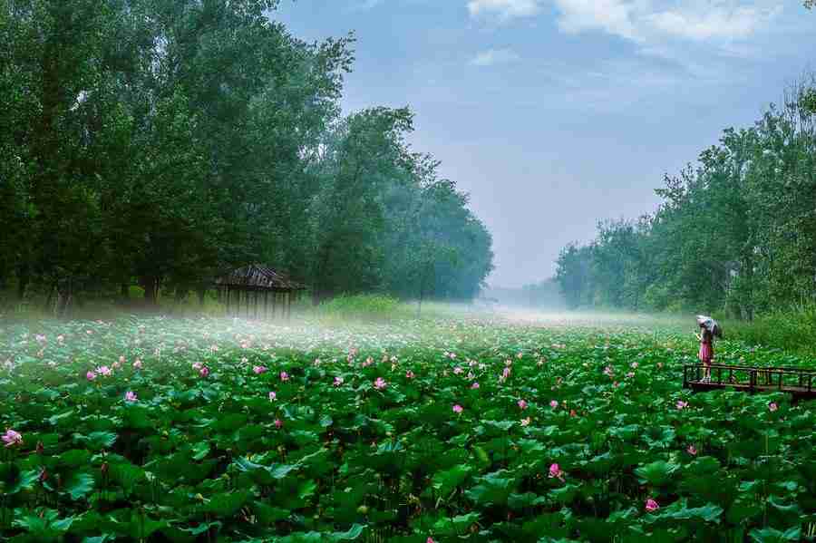 微山湖湿地红荷旅游区也叫做红荷湿地,地处微山湖东北部的滕州市滨湖镇境内,是中国最大的荷花观赏地和北方最大的天然湿地。每年七月中旬至八月中旬,这里万顷红荷盛放,风光旖旎,是赏荷摄影的胜地。你还可乘船行于微山湖中,尽情享受夏季难得的清凉。
