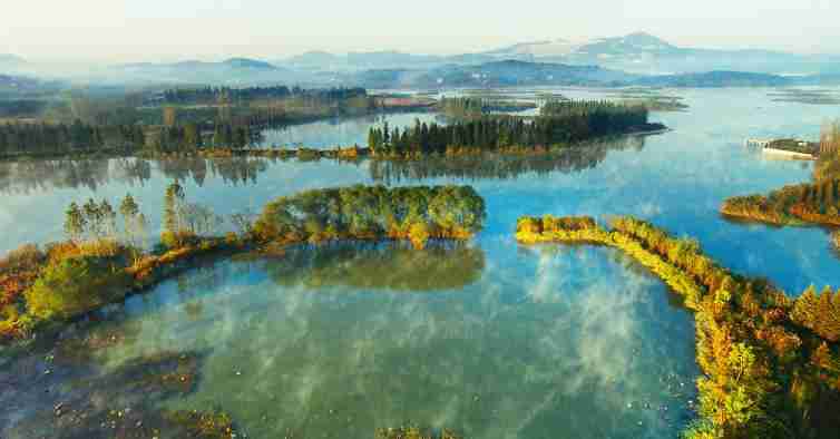 棘洪滩水库是亚洲最大的人造平原水库,在清澈的水面上,你会看到悠闲自在的野鸭妈妈,带着宝宝飘在水面上