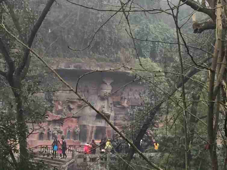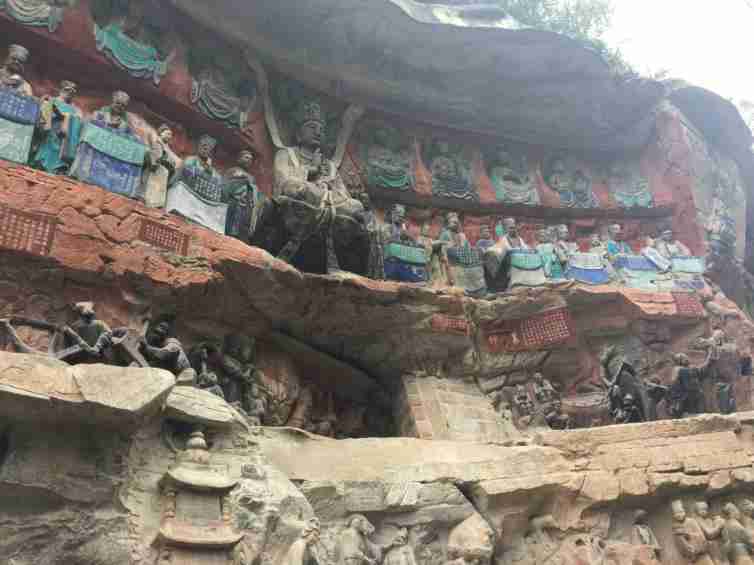 大足石刻位于重庆市大足区境内,是唐末、宋初时期宗教摩崖石刻,以佛教题材为主。