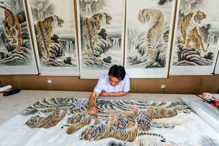 古村介绍:商丘市民权县北关镇的王公庄村,曾经常年过着“红薯汤,红薯馍,离了红薯不能活”的苦日子。然而王公庄村用了十年的光景便扬名海内外,全村1366人中有800余人从事与画虎相关的产业,老虎图年销售3万多张,销售额达到六千万元。进入王公庄村,可以看到一条笔直的水泥路,道路两侧林立着无数的画室、装裱店、画具店等等,每一个店面与虎画有关,村民给这条路取了一个名字,叫文化街,以彰显特色和文化带给村庄的复兴。
