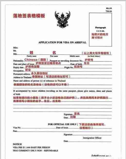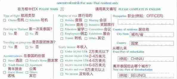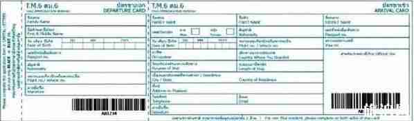 出入境卡在乘机去泰国的时候,空乘通常会在飞机上提前发放出入境卡,如果在飞机没有领到,办理落地签旁边的柜台上办理也有领取。