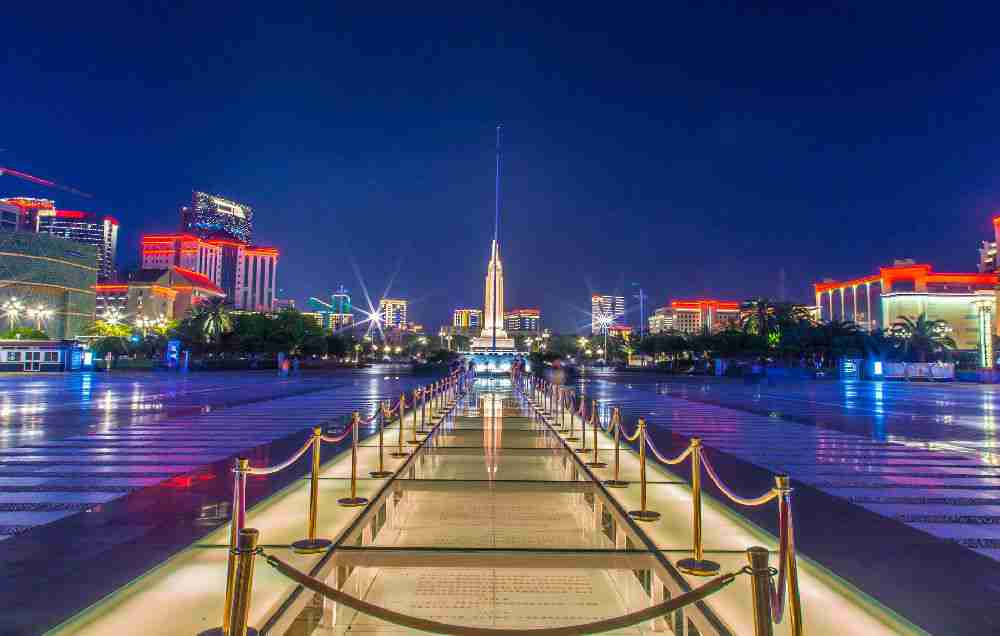八一广场原名人民广场,是南昌老城区标志性夜景城市景观,自军乐喷泉开放以来八一广场周边建筑进行好几轮夜景灯光改造,成为了老城区最亮红色宝石。