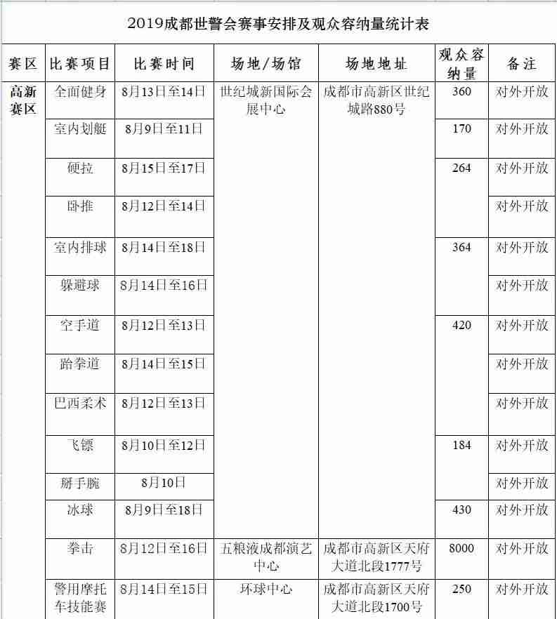 门票信息:2019成都世警会除射击等个别不对外公开项目和开幕式,其他项目比赛不需要门票!免费观看!至现场满额为止。开幕式需要门票进入!