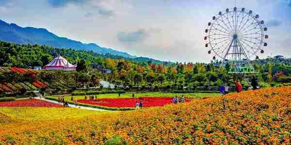 数千亩花海景观,数十种花卉竞相绽放,更有卡通气模巡游,网红游乐伴您左右。
