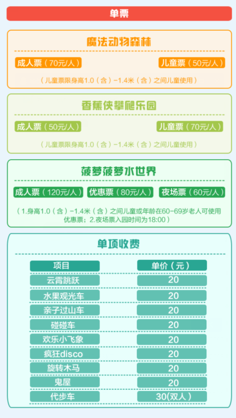 该主题乐园群以多乐园组团“3+1”的概念,采用全园免门票、单组团收费的方式,超低价格,让游客尽享全家欢乐。