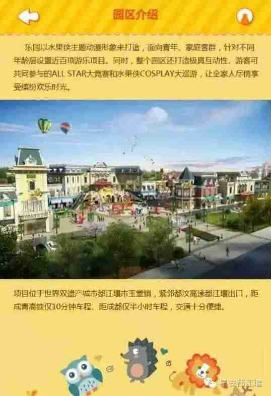 据了解,位于都江堰市玉堂镇的“水果侠”主题世界,是蓝光文旅重点打造的大型室外主题乐园群,也是都江堰市第一座综合型主题乐园。项目占地约300亩,总投资近20亿,乐园以原创IP“水果侠”为主题灵魂。