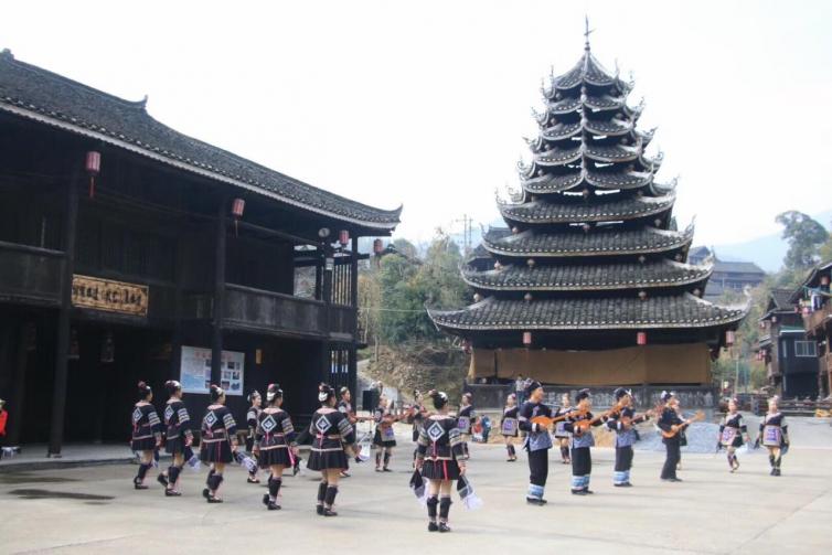 靖州地笋苗寨可以听大歌,苗族歌鼟为多声部合唱形式。在侗寨吃“合龙宴”,气氛一子就上来了。