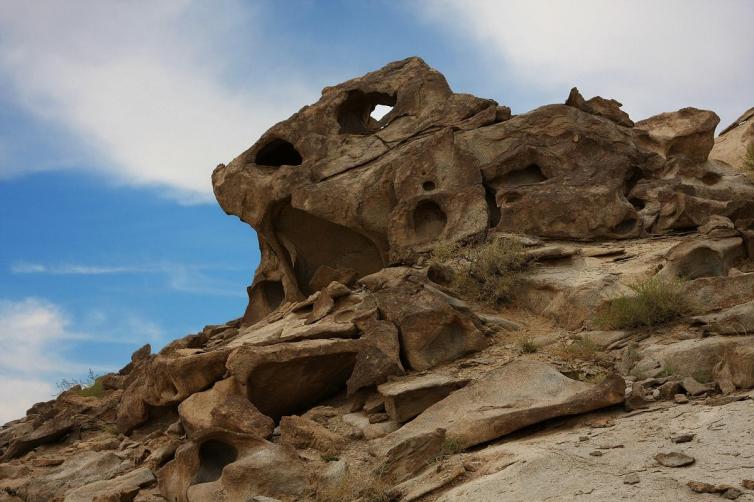 第六天早上从张掖出发,下午到海森楚鲁怪石城。方圆几十里范围内,漫山遍野都是风蚀地貌形成的奇石怪岩。另外,山中有梧桐沟,生长着300多棵梧桐树。晚上回阿拉善右旗市区住宿。