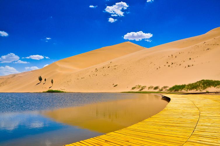 第七天游览巴丹吉林沙漠。在广阔的沙漠之中,除了漫漫的黄沙和星点的湖水,还可以看到美丽的绿色,为沙漠凭添了几分生命的痕迹。晚上可住在沙漠度假区。下一天从武威火车站返程。