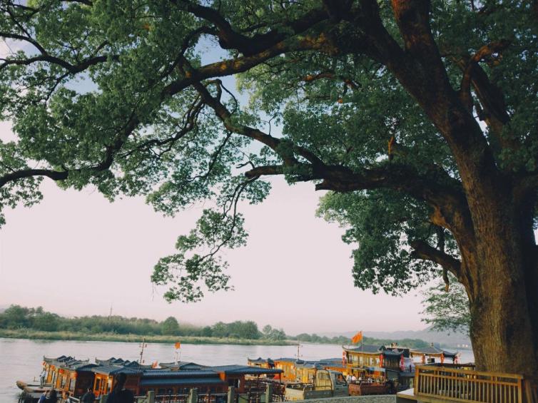 东面街口有棵古香樟树和以此命名的双荫亭,很有韵味。亭旁是香樟古埠,可在此乘坐去往对面堰头村的渡船,或者沿街走到摄影展览馆附近的通坪埠头乘船。