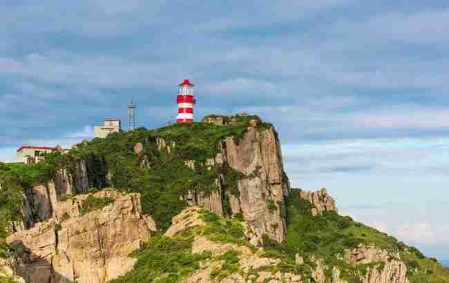 渔山是一个列岛,距大陆最近点石浦镇47.5公里,由54个岛礁组成,有南北两大主岛。烂漫的山花、蔚蓝的海水、奇峻的崖礁,组成了渔山岛世外桃源般的美丽景象。沉浮于汹涌波涛之中的五虎礁,更显出它的雄健之势。潮高时其形状则如珠浮碧海,变得玲珑可爱。