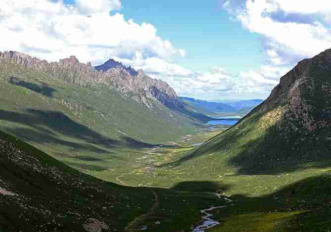 这里怪石嶙峋,奇峰高耸,年宝玉则的主峰由无数海拔在4000米以上的山峰组成,簇拥在一起,如同一朵圣洁美丽的雪莲花。景区内大大小小的海子不下300个,其中以神山脚下的仙女湖和妖女湖最为著名,湖边碧绿的草甸上,是露营的最佳场地。特别是6-8月草原鲜花盛开的季节,美得醉人。