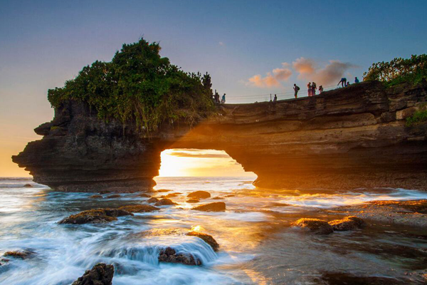 海神庙的日落被誉为“巴厘岛最美的日落”。建在海神庙另一边的亭子是海神庙日落的最佳观赏地。每当夕阳西下,人们可以站在亭子里,看夕阳的余辉照耀在海面上。大海闪着金色的光泽,金色的波浪冲击着海岸,风景非常壮观。