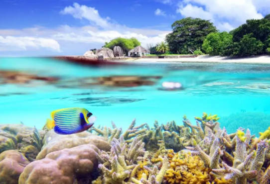 4. 大堡礁:这个地理位置位于澳大利亚东北部珊瑚海的大堡礁,是一个非常美丽的地方,这里有全球最大的珊瑚礁和珊瑚岛。海底下有很多鱼类以及多种海洋软体动物,据说鳕鱼洞是最佳的潜水地点,可以看到石斑鱼而且还会跟随这潜水者。
