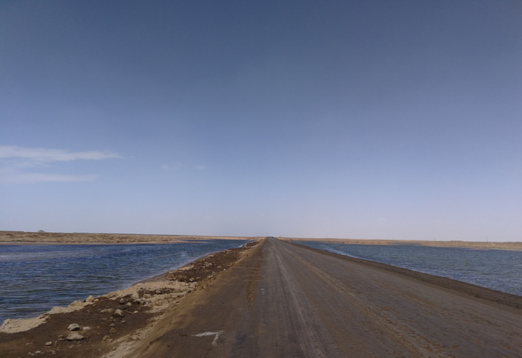 公路从湖中穿过。但以上帝的视角,就会公路就像鸳鸯火锅的隔断,把味道完全不同的两种锅底分隔开来。这里就是西台吉乃尔湖,最大的特色就是:路从湖中过,左右泾渭明!G315国道的穿湖路段,路是从两边湖中经过,两边湖的颜色不一样,一边是墨绿色,一边是黄绿色。据资料介绍,西台吉乃尔湖形成于260万年前。“鸳鸯锅底”的湖泊,原来青海也有,你是不是曾错过这个地方呢?