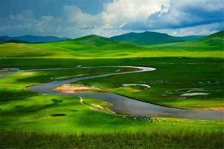 莫日格勒河号称”天下第一曲水”,河道十分狭窄,极度弯曲,但其弯曲程度,用九曲十八弯来形容是远远不够的。河流全长290多公里,属中俄界河额尔古纳河水系。在这里游玩最适合就是发呆,放空自己,静静地感受风吹过触摸肌肤的清凉,看天上的云朵自由的飘荡,牛羊在草原上悠哉地觅食,拿起相机随手一拍都是摄影大片。