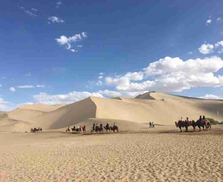 鸣沙山,辽阔、壮丽,山顶滑下来,沙子嗡嗡作响,大小朋友都会玩得不亦乐乎。