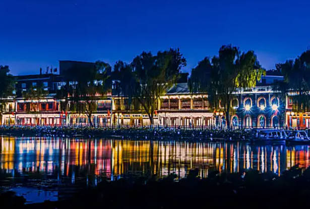 北京适合晚上逛的地方:蓝色港湾、什刹海、长安街、南锣鼓巷。