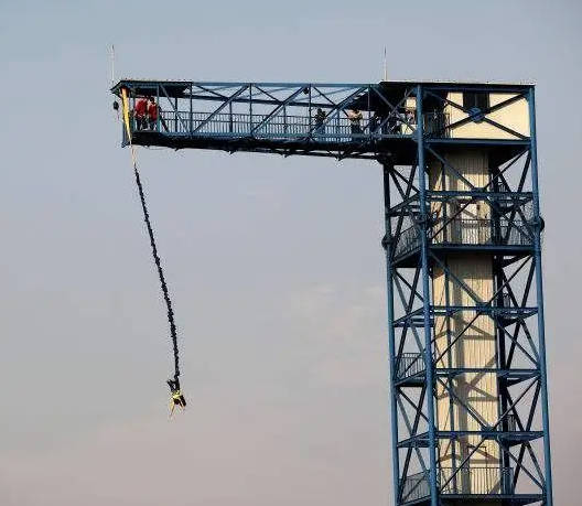 2、浙江宁波 凤凰山 海港乐园蹦极,2019年4月26日正式对外开放,塔高46米,加上湖面距离,有48米高。