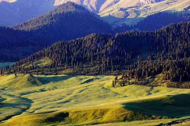 鹿角湾位于新疆沙湾县,天山国防公路直通景区,交通便利,是天山北麓最好的草场之一,处于哈比尕山的低谷丘陵地带,东至大南沟,西到巴音沟,南依山高坡陡的哈比尕山,北界为博尔通古乡政府,地表起伏平缓,草原一望无际,纵横50平方公里。鹿角湾一带曾是天山马鹿繁衍生息之地,成群的马鹿每年要蜕落一次角壳,在山涧、水边遗留下大量的鹿角壳,鹿角湾因此得名。