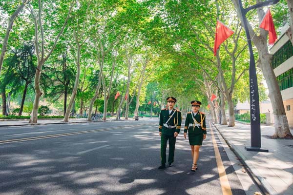 枝繁叶翠的季节,建设一路北段的机动车道及人行道林荫覆盖率可达95%以上。沿街透绿,满眼望去一片青葱,仿佛行走在绿色隧道中。水杉的绿色是它最古朴的颜色,秋天法桐树叶变黄,簌簌落下,又不乏一种华美。