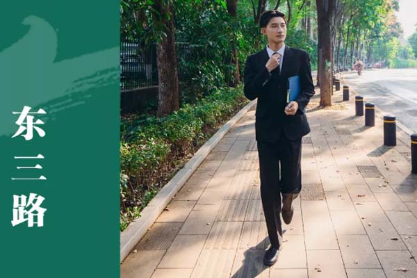 种植着香樟和栾树,东三路是景观最丰富的一条路。她是城市里忙碌的靓丽白领,工作时如一株香樟,自信优雅,永远青翠活力。而栾树四季之景不同,春季嫩叶鲜红,夏季黄花绽放满树,入秋叶色变黄,果实紫红,那不是下班后的她吗?有苦有乐,有喜有悲,是最独特的自己。