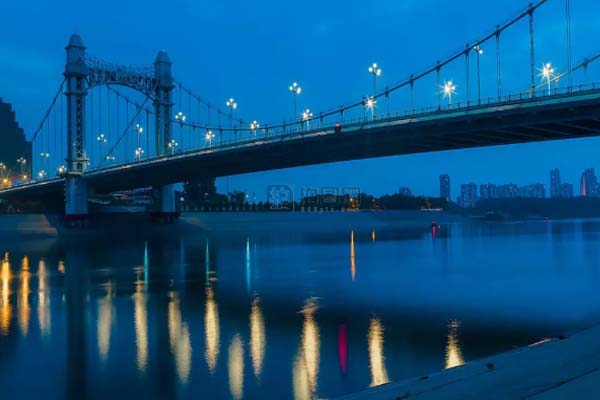 桥型结合了中西合璧建筑景观设计,采用淡普鲁士蓝色的凯旋门式造型,在拱门顶部中央镶嵌着一个镂空的武汉市花——梅花造型,展现的是武汉地域文化特色,很多人在这里拍婚纱,拍照太美了!