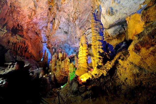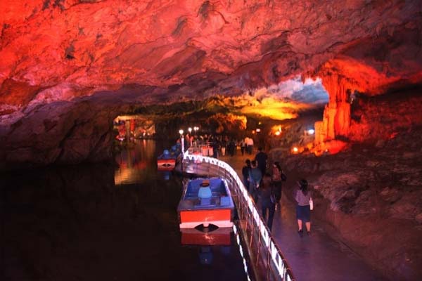 隐水洞全长5180米,原是一片海洋,经过数十万年的地壳运动形成一个天然的钟乳洞。是湖北省命名的首家地质公园,被专家喻为“洞天华中—中华天洞”和“神秘的地下明珠宫殿”。洞内分上下两层,历经百万年演变,景观丰富多彩,独特的熔岩地貌奇特壮丽,十分罕见。洞中游览分为:上游1/3乘船观光、中游1/3乘火车游览、下游1/3徒步零距离感受科学探密的快感,其独特的洞中多样化的游览方式属亚洲第一。