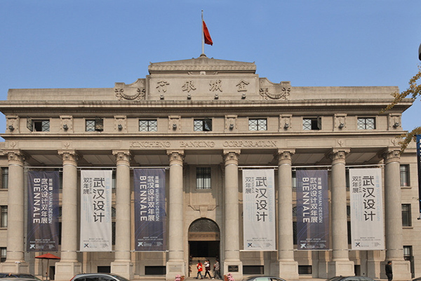 武汉美术馆原金城银行旧址,正立面采用了西洋古典廊柱式样,使得从柱廊之外看整个建筑立面,既恢宏雄伟又富有一定的变化。1938年日军入侵武汉,强占金城银行大楼为总司令部,直至1945年抗战胜利才被金城银行收回。解放后出租给了武汉图书馆,2003年策划建立武汉美术馆。新馆在保留原有建筑风貌的同时,还根据美术馆的功能和设施的要求,对内部结构进行了科学设计和改造。