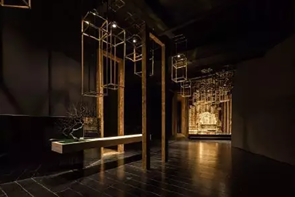 空间意境——以何诠释“金”?阳光透进大地 ,云气引发蒸腾 ,树木(木)、河流(水)、山川(土)、心中燃起的火种!万物生“金”。我们使用自然的材料与元素来实现我们提出的“万物生金”理念。每平米的灰麻火烧板刷黑色亚光环氧树脂漆、欧松板、水泥加黑色墨汁直接滚涂墙面。以前惯用的钢板造价太高不能使用,将水泥板裁条染色,可以达到非常好的效果。整个空间用蒙太奇的手法营造,在现代的时尚里,看见怀旧的古典。