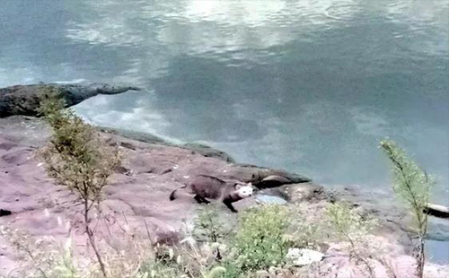它胆子小,看到有人靠近就立即躲起来,待人走远后才再次现身。它可能肚子饿了,似乎在四处寻找食物;也可能是渴了,想跑到湖边去找水喝。